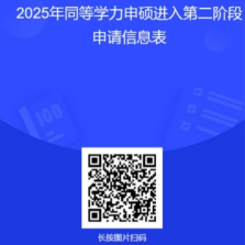 1.申请人于2025年10月8日前,通过问卷链接或扫描二维码填写完毕“同等学力申请硕士学位人员进入第二阶段信息表”。