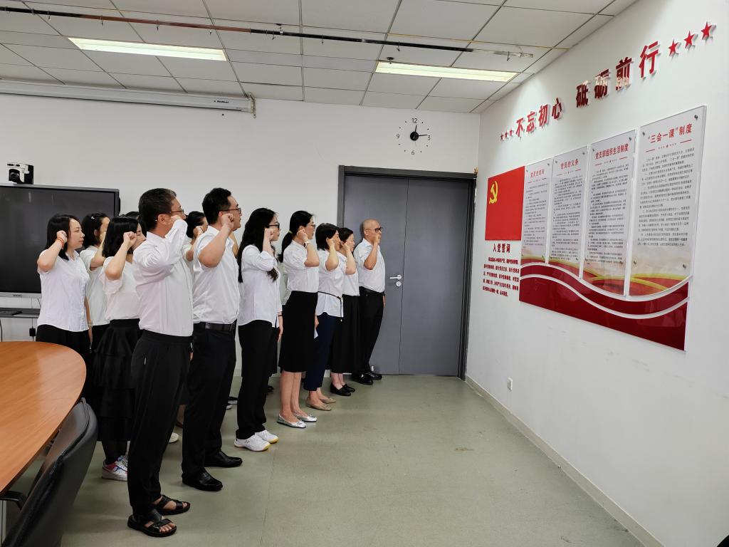 在中国共产党成立104周年之际,为进一步强化党员理想信念,深化作风建设,研究生院教工党支部于2025年7月1日开展重温入党誓词宣誓仪式,并在仪式后参观“校史中的优良作风——深入贯彻中央八项规定精神学习教育展”,以实际行动向党的生日献礼,激励党员干部传承红色基因,践行使命担当。研究生院党总支书记兼副院长常海波、院长李华、党总支副书记兼副院长蔡竹参加,仪式由蔡竹主持。